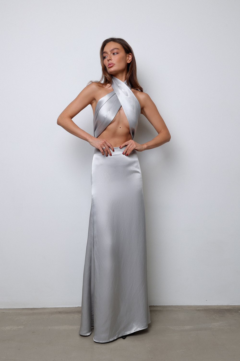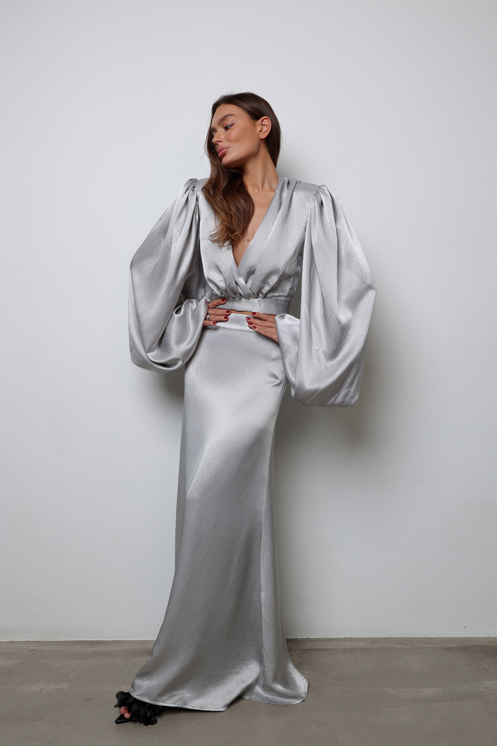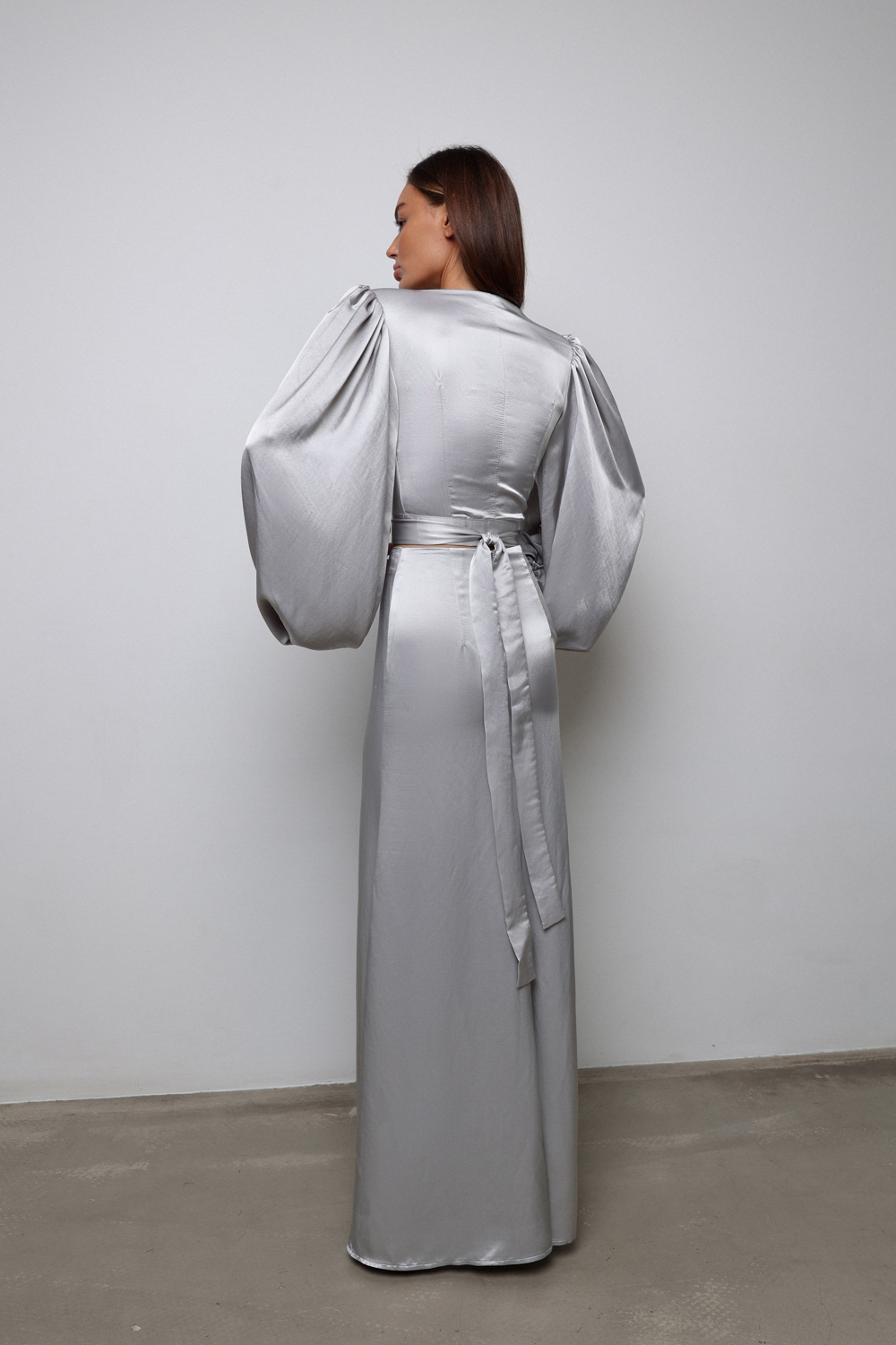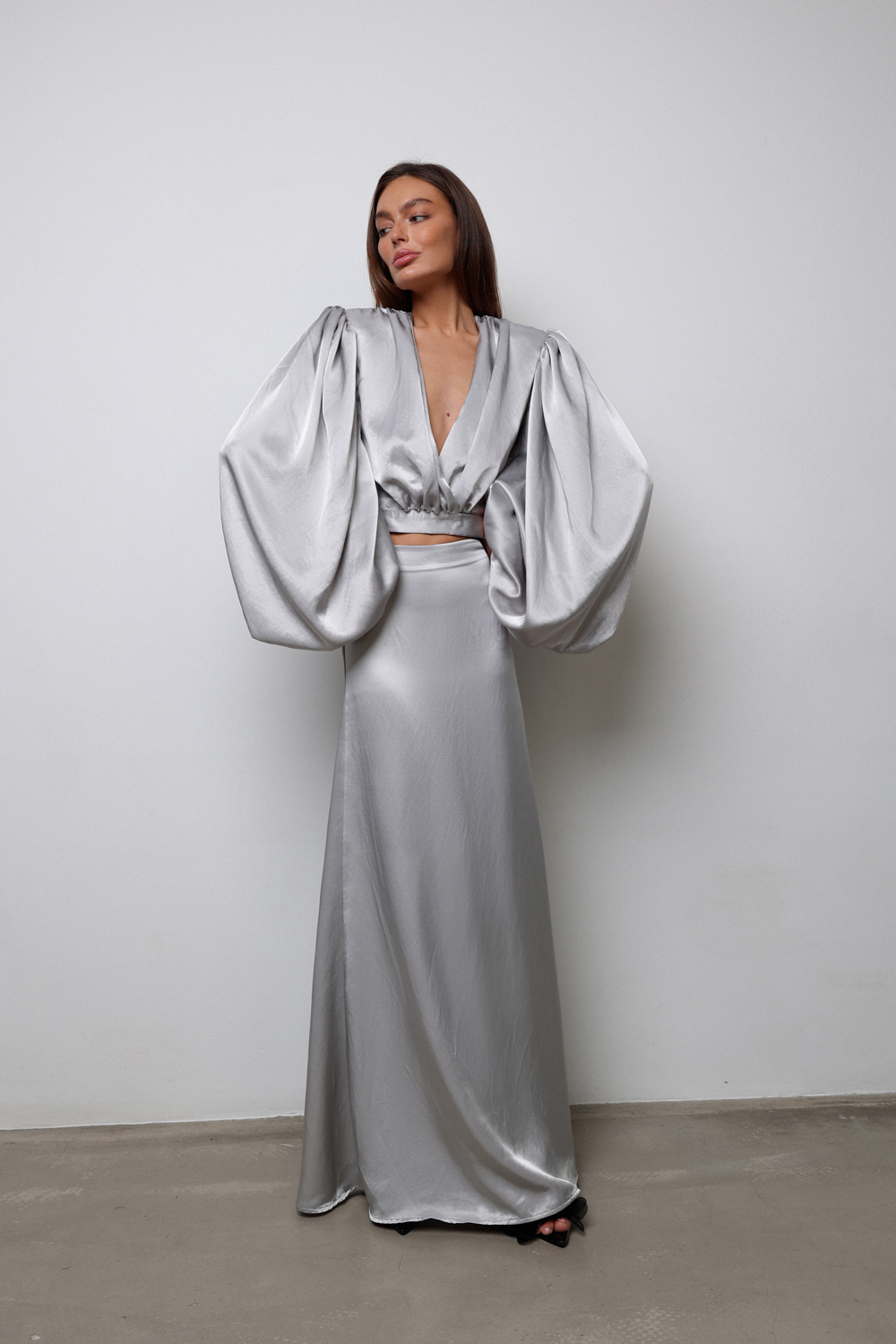 Блуза Сюзанна в изысканном серебристом оттенке из 100% вискозы.