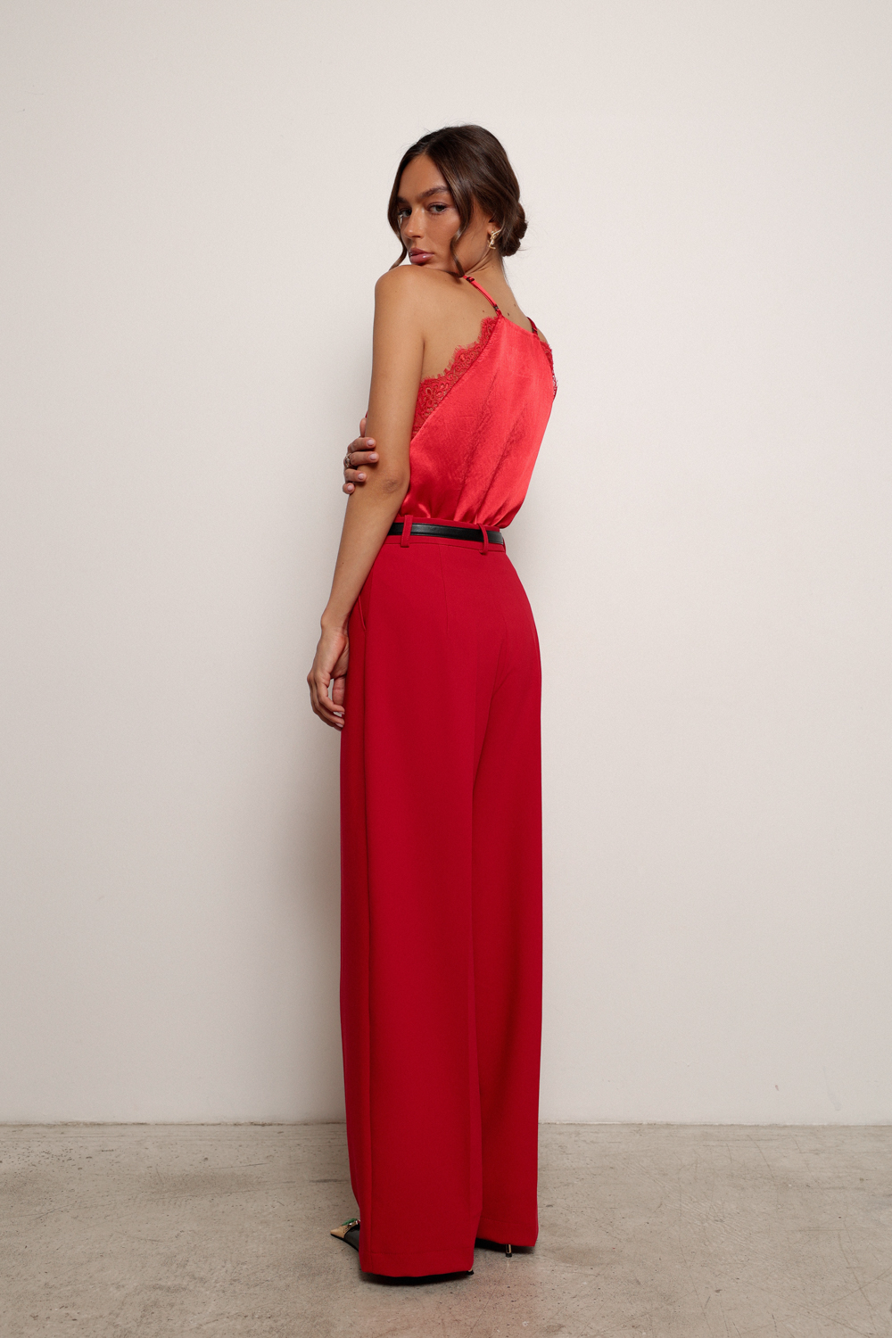Благодаря высокой посадке они подчеркивают талию и визуально удлиняют ноги, а аккуратная стрелка придает брюкам строгий и современный вид. Выполнены из качественной ткани, обеспечивающей комфорт и отличную посадку.