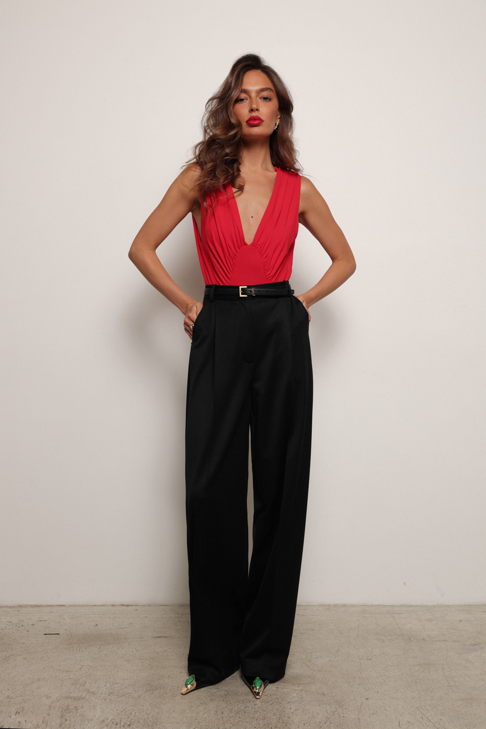 Красные брюки с высокой посадкой и классической стрелкой — это элегантная и универсальная модель, идеально подходящая для создания стильных образов.