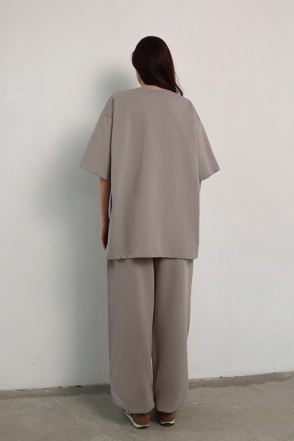 Главная особенность модели — кулиска по низу брюк, благодаря которой можно менять силуэт: носить их в свободном прямом крое или затянуть низ, создавая форму джоггеров. Это делает модель универсальной и позволяет адаптировать её под разные образы.