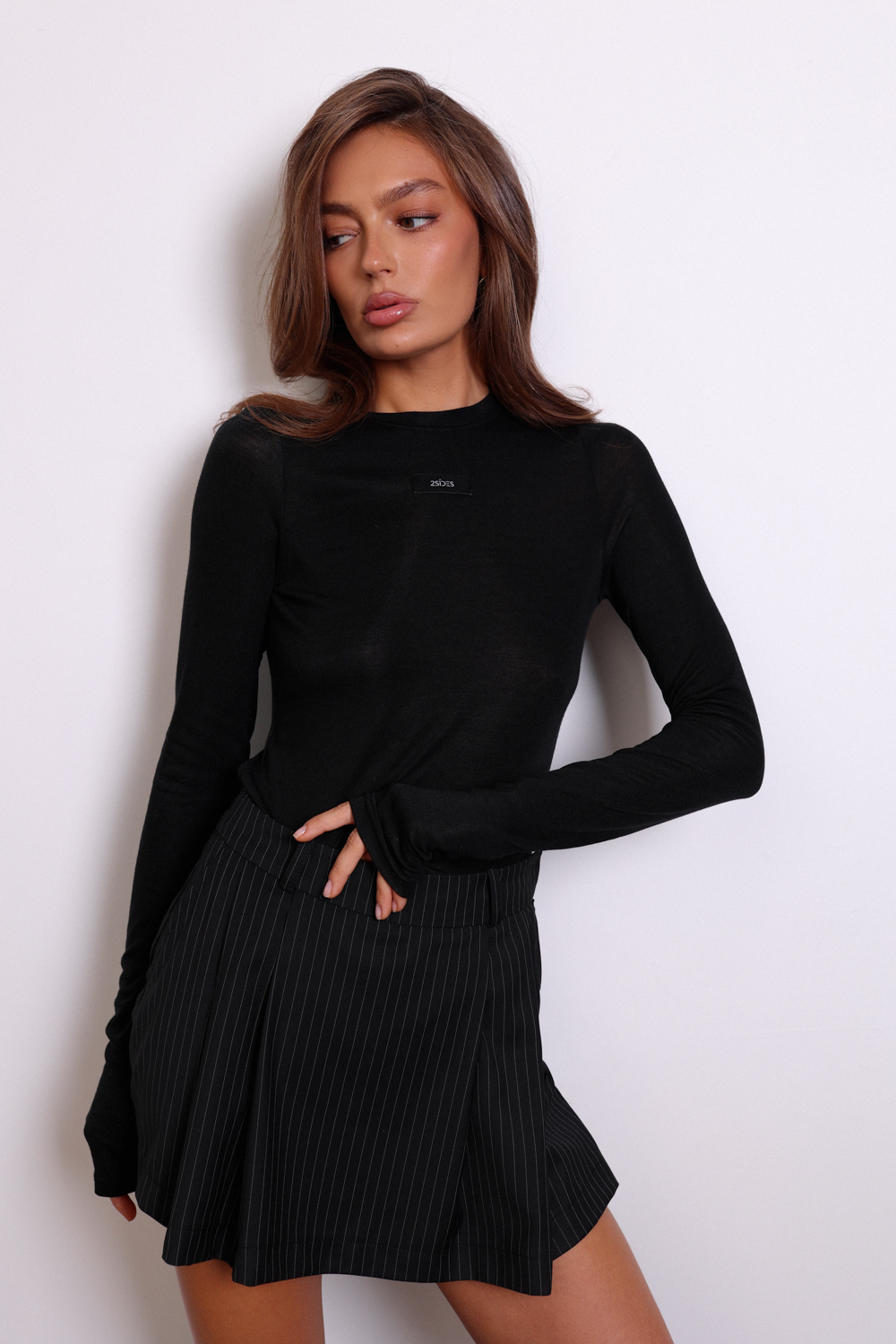 Брюки в черную полоску — идеальная база костюмного гардероба, созданная в комплект к жакету из коллекции, но также идеально впишется в гардероб как самостоятельное изделие. Модель с безупречной посадкой и акцентом на талии формирует элегантный силуэт и подчеркивает фигуру.
