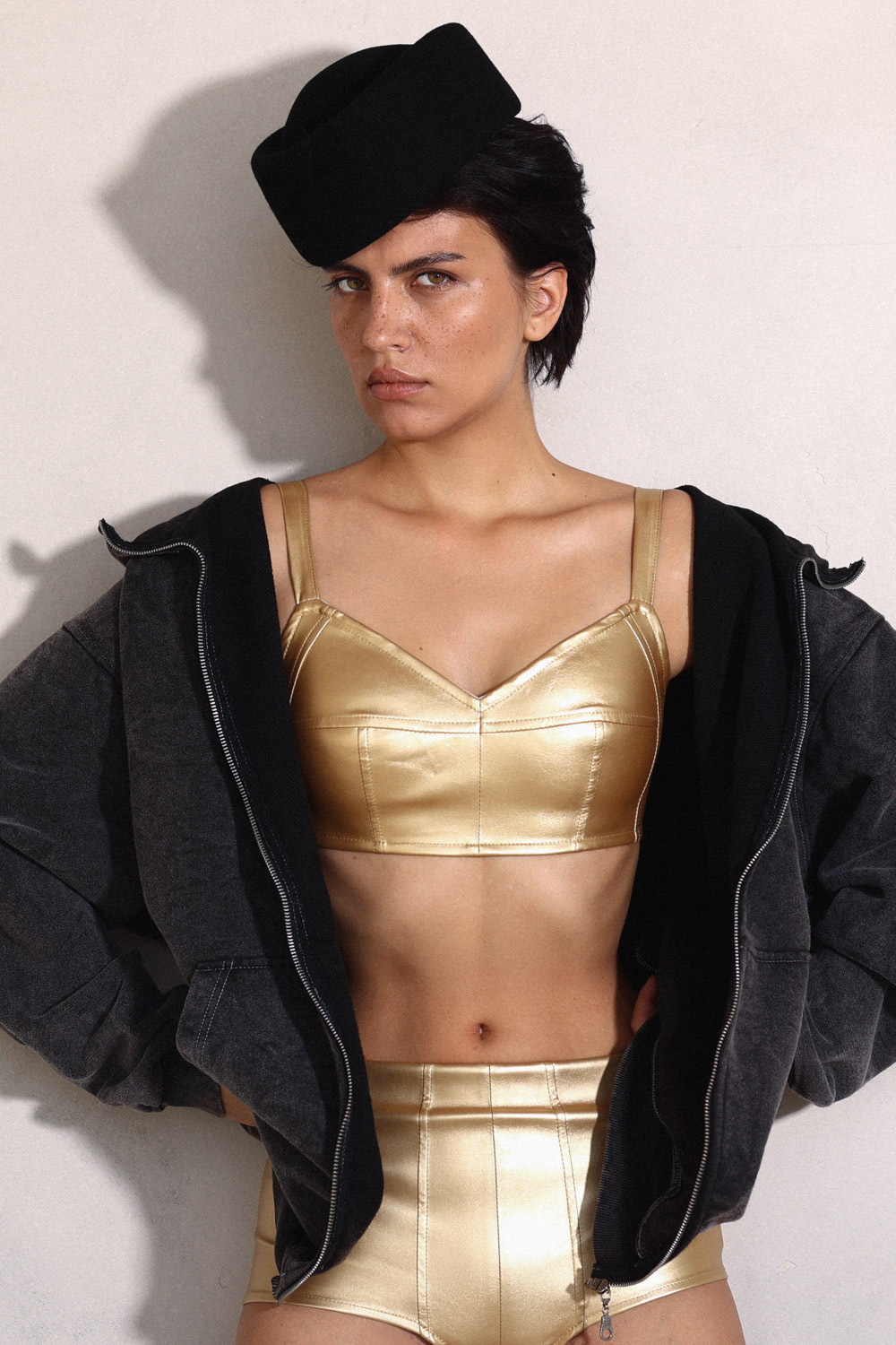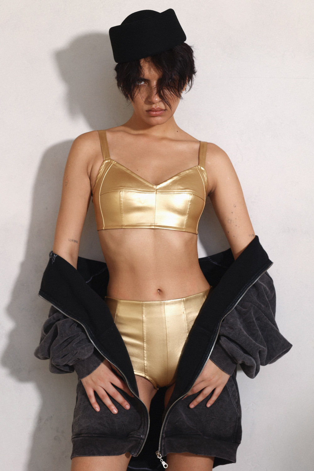Шорты из костюмной ткани выполнены с молнией сзади, декоративными швами на изделии и вытачками для идеальной посадки изделия. По контуру выполнена силиконовая лента для лучшей фиксации шортов на теле. Сделано в России.