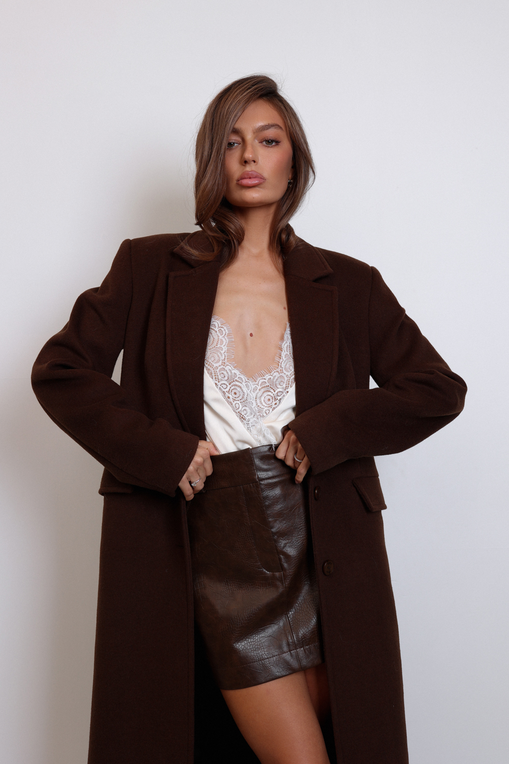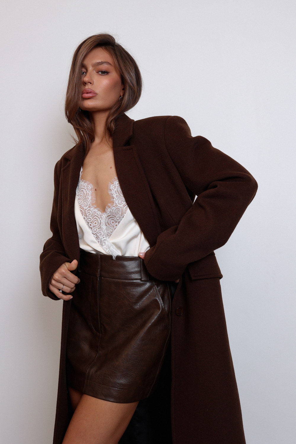 В коллекции также представлен тренч из той же ткани, что позволяет создать завершенный образ и премиальную изысканность.